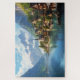 Quebra-cabeça com charmoso campo de lagos de vilas nas montanhas dos Alpes, ilustração de fantasia.