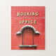 Um design fotográfico da frente de um antigo escritório de reserva de estação ferroviária, onde você poderia comprar seus ingressos de viagem.