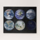 Comparação de imagens de visões icônicas do planeta Terra. Fila de cima da esquerda para a direita: Blue Marble Fotografia 1972, Blue Marble 2002, Aqua Marble 2005. Fila inferior esquerda para a direita: Blue Marble 2012, White Marble 2012, Black Marble 2012.