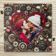 Um presente romântico personalizado com temas e galos, com sua própria foto. Flores e engrenagens metálicas bonito em estilo hiperrealista.