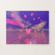 Um quebra-cabeça com meu trabalho de arte de cor rosa 3d flutuando acima das águas refletoras.
