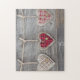 Quebra-cabeça Corações sobre uma mesa de madeira