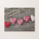 Quebra-cabeça Corações vermelhos na mesa de madeira