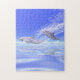 Quebra-cabeça de serra com meu trabalho de arte digital de dois golfinhos esparramando através da água.