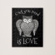 O desenho da coruja com corpo em forma de coração e texto personalizado.