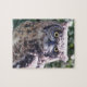 Uma bela coruja majestosa olha para o horizonte. Fotografia natural da ave que é um símbolo ocidental de sabedoria.