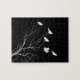 Tente sua mão nesta quebra-cabeça de corvos em uma árvore em preto e branco.