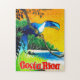 Quebra-cabeça da Costa Rica. Papagaio colorido numa ilha trópica. poster de viagens vintage em seus novos quebra-cabeça de quebra-cabeça.