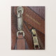 Uma torção divertida para o couro sujo, com clipe de latão e zíper, costuras e costura. Divirta-se provando o quão inteligente você é com este desafiador quebra-cabeça de serra-de-vidro marrom. Personalize com o nome da família por horas de sofisticado enigma. Esta imagem é uma fotografia original de JLW_PHOTOGRAPHY