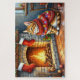 Quebra-cabeça Cozy Abyssinian Cat by Fireplace Christmas Lights
