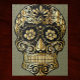 Sugar Skull Art. Estilo mexicano Dia dos Mortos - trabalho de arte criativo temático. Imagem do crânio humano criada pela combinação de formas abstrato e padrões em cores douradas e pretas.