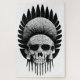 Crânio com endereço nativo americano. Arte Negra e Branca Tribal Escura.