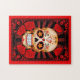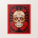 Quebra-cabeça Crânio vermelho do açúcar com poster dos rosas