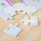 Um quebra-cabeça de quebra-cabeça de unicórnio fofo para crianças com estrelas e um arco-íris. Personalize com seu nome para fazer um presente divertido para uma garota!