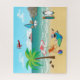 Aproveite horas de diversão com este adorável quebra-cabeça de quebra-cabeça! Esta ilustração cartoon mostra uma cena de praia muito bonita de duas crianças que fizeram uma explosão navegando em direção à costa onde sua mãe põe bronzeamento solar com seu laptop. Um casal de patos brinca perto, um piloto sobrevoa e um navio cruza pelo oceano. Parece que o excelente está colado, enquadrado e pendurado na parede! Faz um presente perfeito para uma criança ou qualquer um que ama a praia!