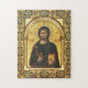 Jesus Cristo com os Evangelhos dentro de uma armação de latência dourada, intrincada, ícone Cristão Ortodoxo, jigserra quebra-cabeça.