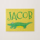 Quebra-cabeça design apresenta uma ilustração original de um jacaré verde e amarelo (ou crocodilo!) Apenas personalize com a informação do seu filho. Esta ilustração também está disponível em outros produtos. Não vê o que está procurando? Precisa de ajuda para a personalização? Entre em contato com Rebecca para ter algo projetado só para você.