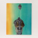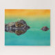 Quebra-cabeça Crocodilo Verde Bebê em Água com Azul e Laranja