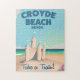 CROYDE BEACH Beach Devon Viagens vintage. O trem britânico poster a Devon apresentando um castelo de areia para CROYDE BEACH, Devon.