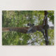 Crucificação de Jesus Cristo, Estátua de Jesus de Bronze pendurada na Cruz cercada por árvores, Fotografia com Texto Personalizado: Padre, perdoe-os por não saberem o que fazem... Luke 23:34... Quebra-cabeça Difícil de Jigsaw com texto personalizado, você pode escolher fácil, desafiador ou difícil.