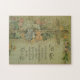 Esta quebra-cabeça de serra mostra uma foto de uma cruz cercada por flores e a Escritura de John 3:16 impressa na face da quebra-cabeça.