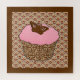 Quebra-cabeça de um Cupcake cor-de-rosa de Morango, tocado com uma borboleta de chocolate num invólucro decorativo, de cupcake com padrão de damascos de chocolate, sobre um fundo castanho, bronzeado e coral, cor-de-rosa, chinês, rebaratado
