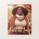 Abraçar o calor do outono com a nossa quebra-cabeça de serra de outono, Bliss, apresentando uma ilustração encantadora de uma bela mulher curvada africana-americana em traje de outono em moda, brincando alegremente nas folhas contra um fundo de árvore de outono. Este elegante design ostenta um esquema de cor de outono, capturando a essência da estação. Adicione seu próprio texto personalizado à parte inferior para um toque personalizado. Perfeito para a atividade de Ação de Graças ou qualquer celebração de outono, este ©2023 Miss Sassy Party Design nos traz o epítome da elegância do outono para os seus gestos refletidos