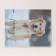 Turn your favorite pet photo into a heartwarming keepsake with this custom dog photo puzzle. Featuring your dog’s picture and name in a modern calligraphy script, this elegant design makes the perfect gift for dog lovers, pet parents, or families who adore their furry friend.