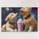 Quebra-cabeça Cute Fluffy Puppies uivando lua, planetas leiteiro
