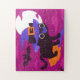 Quebra-cabeça Cute Witch Cat Flying on Broom Halloween Kawaii