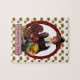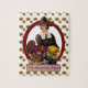 Peregrino que mantem uma abóbora e as uvas, estando ao lado de um peru com a indicação abaixo de "das alegrias Thankgiving", cercadas pelas folhas de outono