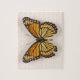 Esta design de quebra-cabeça apresenta uma representação de uma borboleta com asas de cor laranja ou castanha.