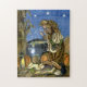 Uma bruxa doce dobra-se sobre um caldeirão que sussurra palavras mágicas. Cor de água ilustrada. Cores do outono.