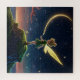 Lindo quebra-cabeça apresentando uma fada sonhadora em pé em uma colina gramada sob uma lua crescente brilhante, cercada por estrelas e um céu mágico de crepúsculo. Perfeito para relaxar, presentear, momentos aconchegantes com quebra-cabeças e qualquer um que ame arte de fantasia e cenas noturnas encantadoras. Um design de quebra-cabeça caprichoso e elegante cheio de maravilha, luz e magia ao luar.