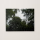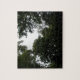 Esta quebra-cabeça espetacular mostra uma fotografia tirada de dentro de uma floresta densa. A fotografia mostra a escuridão das árvores e uma pequena área do céu das cinzas. O resultado é uma cena estranha e atmosférica.