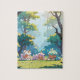 Quebra-cabeça fantasiosa com três garotas unicórnicas relaxando em uma clareira na floresta