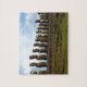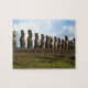 Quebra-cabeça do divertimento da família com a imagem que contem a imagem da Ilha de Páscoa. vem completo com o recipiente de armazenamento.