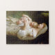 Quebra-cabeça da inocência de Bouguereau. Pintura a óleo em canvas desde 1883. William-Adolfo Bougueeau era um pintor e um neo-classicist franceses da tradicionalista que tirassem frequentemente em temas mitológicos, bíblicos, e literários. Seu trabalha características da inocência uma jovem mulher bonita que guardara um bebê e um cordeiro. A mulher tem claro - cabelo marrom e veste um vestido branco e um xaile creme-colorido. Um olhar doce e delicado marca seu countenance enquanto o bebê cai adormecido. Um presente bonito para fãs de Bouguereau, de neoclassicism, da pintura alegórica, dos cordeiros, e dos bebês.