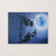A quebra-cabeça da Lua de Raven, mostra dois corvos que parecem estar falando um com o outro à luz da lua. Arte original de Lora Duguay feita em óleo na canvas.
