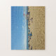 Uma bela vista da praia Bournemouth, na Inglaterra, impressa em uma quebra-cabeça.