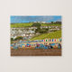 A cena inglesa impressionante em um quebra-cabeça, Woolacombe da praia no sul a oeste de Inglaterra é um destino popular para surfistas.