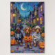 Dachshances Adoráveis vestidos em fantasias divertidas do Halloween carregar baldes de abóbora enquanto trick-or-tratando sob o céu iluminado pela lua. Este design festivo destaca o corpo longo da raça, o espírito lúdico e a natureza leal, capturando perfeitamente a atmosfera assustadora, mas alegre, da noite de Halloween. Uma celebração encantadora para amantes de cães e fãs de Halloween.