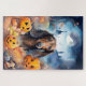 Quebra-cabeça Dachshund Halloween Com Pumpkins Assustado