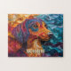 Este é um retrato colorido abstrato de um cão da raça Dachshund no estilo de arte de coloração de papel. Este é um quebra-cabeça excelente para amantes de cães e donos de Dachshund.