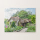 Uma bela fotografia de uma cabana inglesa impressa num quebra-cabeça.