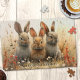 Quebra-cabeça com três belos coelhos numa cena floral. Esta adorável pintura de coelho também é bonita como uma atividade ou um presente de entretenimento Páscoa.