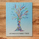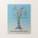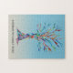 Quebra-cabeça de árvore da família personalizada. Esta quebra-cabeça de na moda é decorada com um design de árvore genealógica colorida no arco-íris em um fundo azul ombre. Personalize-o com seu nome de família. A árvore foi originalmente feita em mosaico usando pequenos pedaços de vidro colorido. Mosaico original © Michele Davies.