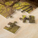 110 pedaços de quebra-cabeça juntam-se para criar esta linda cena de uma velha árvore torcida, cujas ramificações se estendem por um pequeno lago, amarelado no início da manhã.
