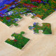 Um rolo clássico da igreja sobe acima das árvores brilhantes do outono neste quebra-cabeça de serra de pintura com sabor a Americana.