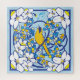 Um bonito passarinho amarelo está entre ramos do estilo Art Nouveau e bagas cantando seu coração! Este é um quebra-cabeça excelente para pessoas que vivem com a forma mais comum de cegueira das cores.